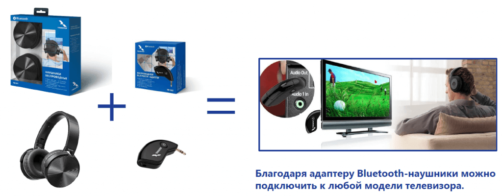 Беспроводная передача звука на наушники от телевизора, у которого нет встроенного Bluetooth-модуля.