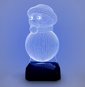 Основным элементом светильника 3D является плоская фигура, изготовленная из оргстекла. На шаблоне фигуры осуществляют гравировку специальных линий, что и создает 3D эффект.