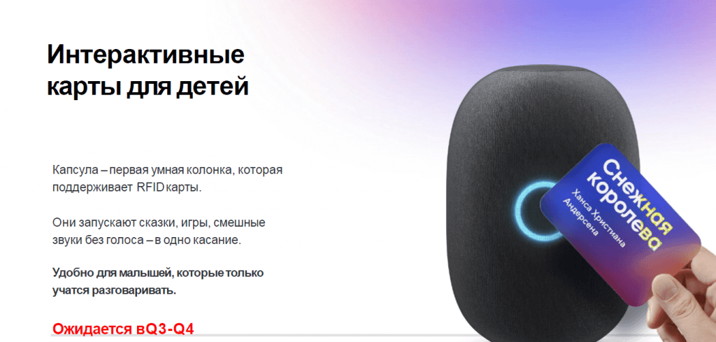 Приложите карту к колонке, чтобы активировать навык. Удобно для детей. |