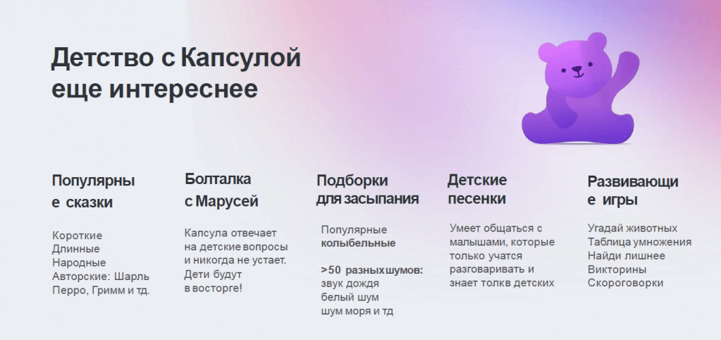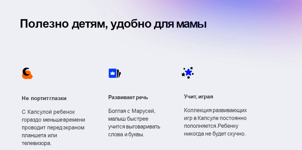| Отлично звучит | Занимает детей | Помогает с рутиной |