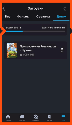 Для мобильных устройств под управлением Android и iOS есть возможность скачать фильмы и сериалы в дорогу и смотреть их без доступа в интернет.