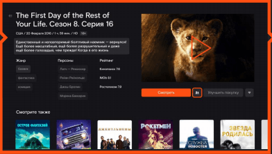 Умная система рекомендаций сформирует персональную подборку фильмов,сериалов и ТВ передач на основе истории просмотров и предпочтений пользователя.
