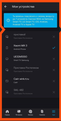 Возможность подключить к одному аккаунту до 7 устройств и смотреть Wink когда и где удобно.